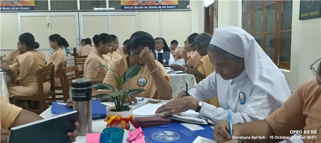 The day began with a deep sense of gratitude and excitement as 43 members of the province gathered in the mother house for another milestone in the history of the province. The meaningfully and creatively prepared Holy Eucharistic celebration set a solemn tone for the day ahead. The aptly prepared introduction by Sr. Sumita, unfolded the theme “Reimagining the Path as Pilgrims of Hope.” Sister invited the participants to gaze courageously at the road before us—not with fear or hesitation, but with hearts rooted in God and open to His unfolding mystery. Like true pilgrims, we may not possess all the answers, yet we walk forward in trust, knowing that every step, every encounter, and every shared insight is woven into God’s larger invitation to renewal and grace.