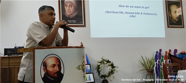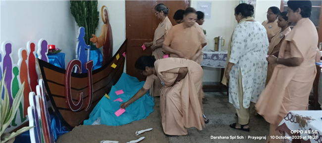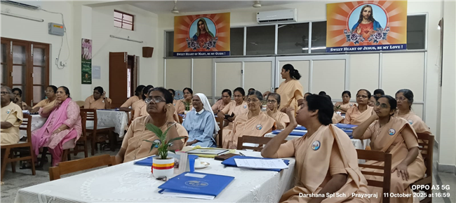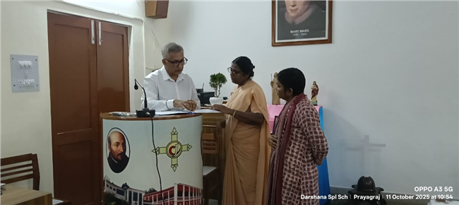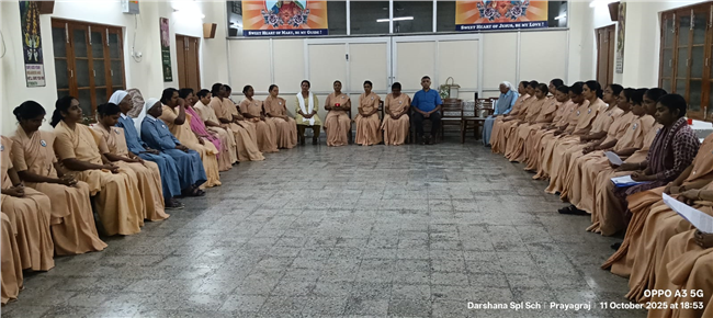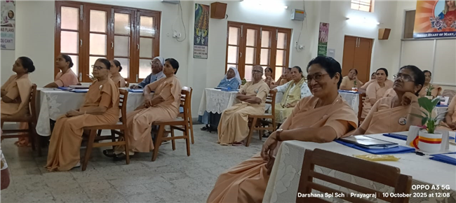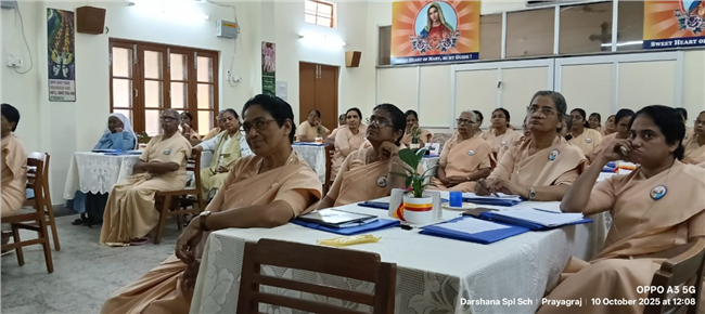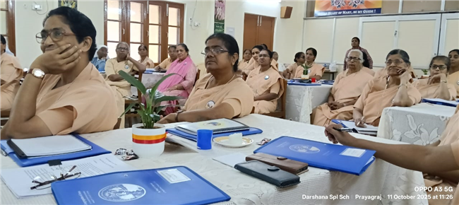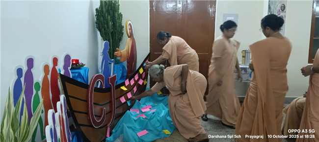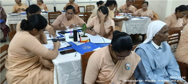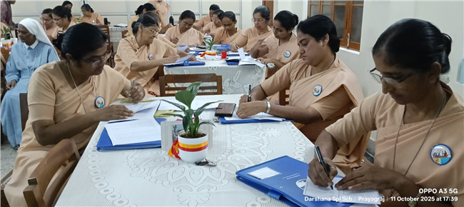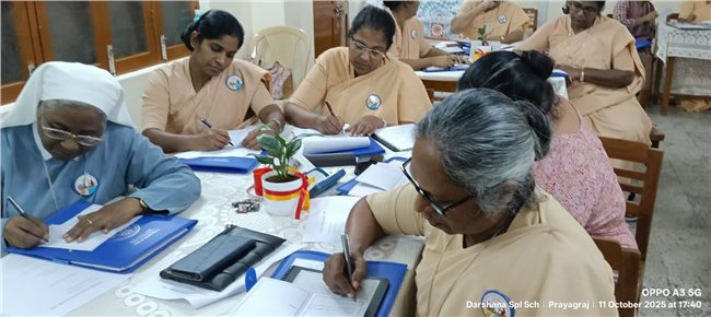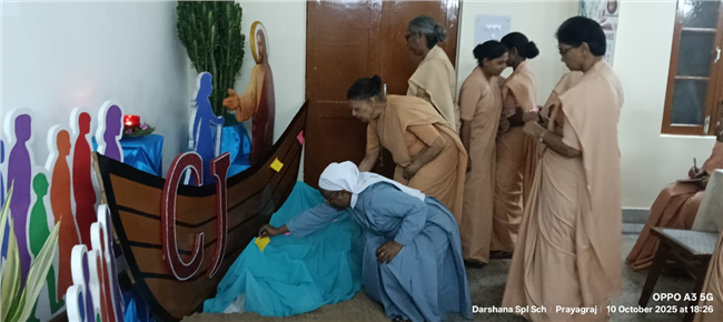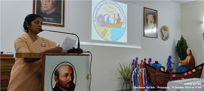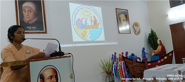 The dawn of the first day of our Province Assembly 2025 broke with a deep sense of expectation and reverence. The day began with a meaningful Holy Eucharistic celebration, setting a sacred and reflective tone for the days ahead. During the Introduction of the Holy Eucharist, Sr. Sumita beautifully unfolded the theme, “Reimagining the Path as Pilgrims of Hope.” She invited each one of us to gaze courageously at the road before us—not with fear or hesitation, but with hearts rooted in God and open to His unfolding mystery. Like true pilgrims, she reminded us, we may not possess all the answers, yet we walk forward in trust, knowing that every step, every encounter, and every shared insight is woven into God’s larger invitation to renewal and grace. Drawing inspiration from our beloved Foundress, Venerable Mary Ward, Sr. Sumita recalled her prophetic words, “Women in time to come will do much.” Her daring faith and unwavering trust in Divine Providence continue to echo powerfully in our hearts today—calling us to walk in faith and freedom, to listen to the whispers of the Spirit, and to respond with courage to the cries of our times