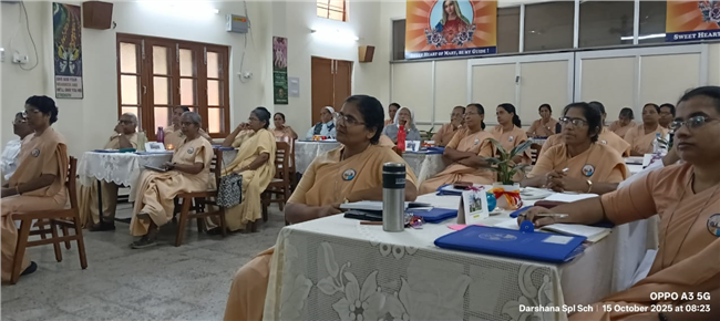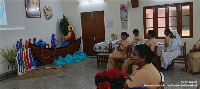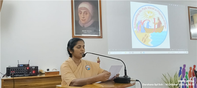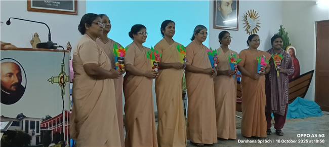 The dawn of the first day of our Province Assembly 2025 broke with a deep sense of expectation and reverence. The day began with a meaningful Holy Eucharistic celebration, setting a sacred and reflective tone for the days ahead. During the Introduction of the Holy Eucharist, Sr. Sumita beautifully unfolded the theme, “Reimagining the Path as Pilgrims of Hope.” She invited each one of us to gaze courageously at the road before us—not with fear or hesitation, but with hearts rooted in God and open to His unfolding mystery. Like true pilgrims, she reminded us, we may not possess all the answers, yet we walk forward in trust, knowing that every step, every encounter, and every shared insight is woven into God’s larger invitation to renewal and grace. Drawing inspiration from our beloved Foundress, Venerable Mary Ward, Sr. Sumita recalled her prophetic words, “Women in time to come will do much.” Her daring faith and unwavering trust in Divine Providence continue to echo powerfully in our hearts today—calling us to walk in faith and freedom, to listen to the whispers of the Spirit, and to respond with courage to the cries of our times